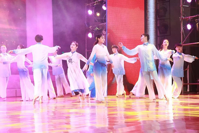 开幕式晚会以“新时代、新风采、新希望”为主题,通过声乐、舞蹈、器乐等多种艺术形式,讴歌时代主旋律,反映时代新风貌。开幕式上,大型歌舞《盛世欢歌》、大合唱《不忘初心》、舞蹈《瑶湖潮》、管乐演奏《难忘的旋律》、京剧演唱《红梅赞》等节目先后上演,博得了在场观众阵阵掌声。我校音乐舞蹈学院带来的舞蹈《看那一张张笑脸》通过简易活泼的舞蹈肢体语言,结合古今的舞蹈动作展现了当代大学生朝气蓬勃的模样,成功将整场晚会推向高潮。