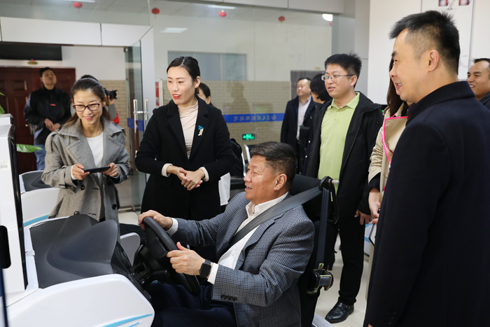在护理学院,牛三平先后参观了助产实训中心、药学实验中心、护理技能实训中心。参观过程中,牛三平对我校先进的教学设施表示赞赏。在蓝天驾校,牛三平等人体验了VIP学员享受的情景仿真模拟驾驶服务,观看了文明交通3D影视宣传片。在参观大学生思想政治教育基地过程中,牛三平对我校党建和思政工作给予了高度评价。在红绿蓝众创空间,牛三平详细了解了我校大学生创新创业工作开展情况和取得的成果。参观完蓝天阁、生态园后,牛三平表示我校优美的校园环境给他们留下了深刻印象。