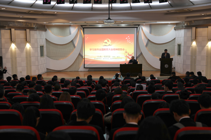 江科网讯(记者 何强江)11月22日下午,校党委书记程样国在图书馆报告厅为第八期“蓝园之星”大学生骨干培训班宣讲全国教育大会精神。各学院团委书记、兼职副书记、学生会主席及第八期大骨班全体学员到场聆听。