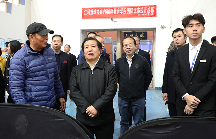 在体育馆,孙菊生走进熊国宝羽毛球校内实践基地、室内篮球馆和健身房。他对江科学子在课后积极参与各类体育运动表示肯定。他说,丰富多样的课外体育活动有助于青年学子成长成才,同时对营造丰富多彩的校园文化具有重要意义。