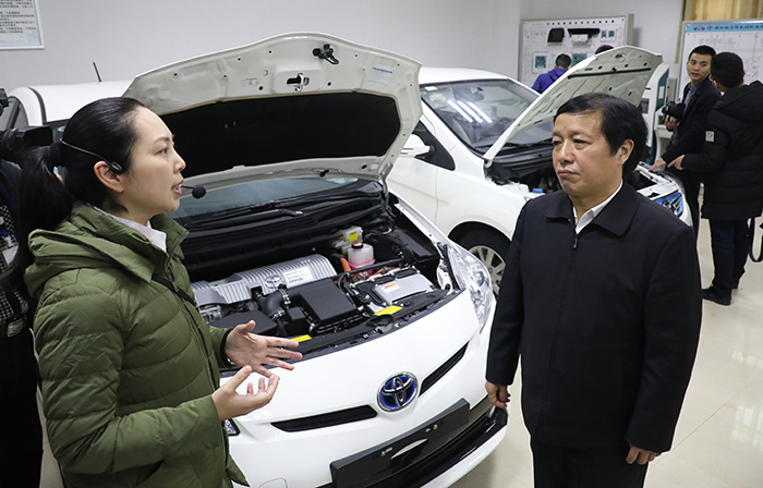 孙菊生一行先后来到我校2011汽车服务工程及产业升级协同创新中心、护理学院、体育馆等地,听取相关负责人工作介绍,详细了解学校教育教学工作。