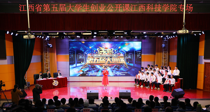 江科网讯(记者 何强江)11月16日下午,“青春创业行·开启未来路”江西省第五届大学生创业公开课(简称“大创课”)江西科技学院专场在我校全媒体演播中心开讲。省高等院校毕业生就业工作办公室主任陈学军,江西广播电视台综合新闻频率总监罗春瑜,江西科技学院党委副书记、副校长万哨凯,省高等院校毕业生就业工作办公室就业指导科科长安光与我校相关部门负责人,学生代表共计300余人观摩了公开课。公开课采取微信在线视频直播、手机江西台直播等多种形式播出。
