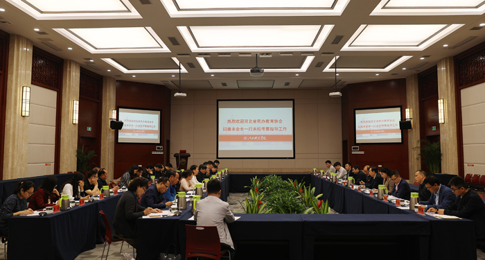 于果在会上致辞,代表学校对闫春来一行的到来表示热烈欢迎。他说,我国改革开放40年来,江西的民办教育事业从无到有、从小到大、从弱到强,不断壮大,探索出了一条民办教育发展的创新之路,为国家培养了数以百万计的各类优秀人才,为服务国家及江西地方经济、社会发展做出了应有贡献。江西民办高校已成为江西乃至全国高等教育的重要组成部分。他希望通过此次座谈交流,学习借鉴河北省在民办教育事业发展中的好经验、好做法,用于指导我校今后的工作。最后,他希望与河北兄弟院校能够加强交流与合作,百尺竿头更进一步,为推动中国民办教育发展做出更大的贡献。
