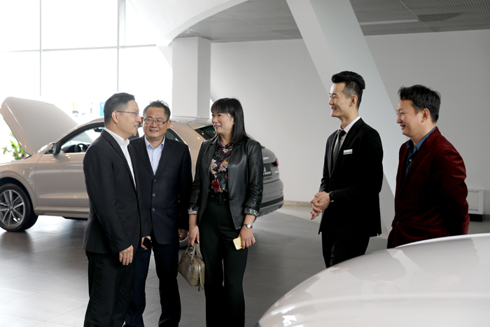 座谈会前,张海涛一行在李兴政的陪同下,参观了园区宣传栏、奥迪店、英菲尼迪店。