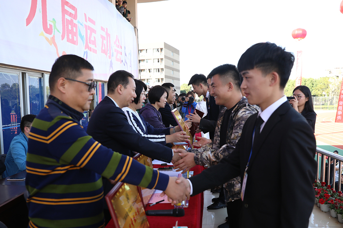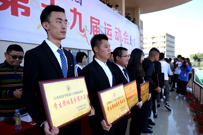幕式上,体育部主任、第十九届校运会执行裁判长李明宣读了《关于表彰第十九届运动会先进集体和先进个人的决定》。文化与传媒学院、管理学院、财经学院、信息工程学院、外语外贸(国际教育)学院、土木工程学院、护理学院、汽车工程学院获得本届校运会学生团体总分前八名。音乐舞蹈学院、服装学院、机械工程学院获体育道德风尚奖。文化与传媒学院、管理学院、艺术设计学院获优秀组织奖。机关行政代表队、音乐服装联合队、信息工程学院代表队获教职工广播体操比赛前三名。管理学院分会、机械工程学院分会分别获教职工拔河比赛第一、二名,机关第四分会和机关第七分会同时获教职工拔河比赛第三名。主席台上出席的领导分别为获奖集体和个人颁奖,同学们的欢呼声此起彼伏。