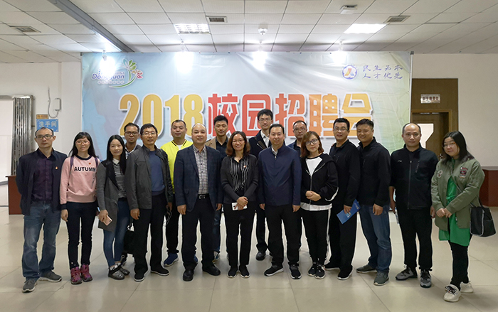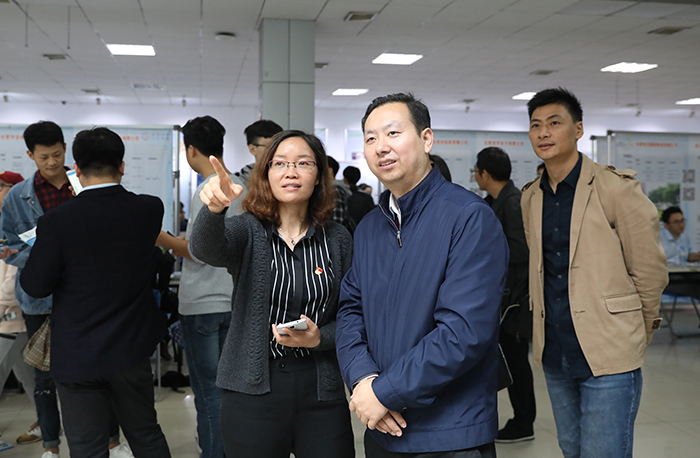 校党委副书记、副校长万哨凯与东莞市人力资源局副局长陈艳一同巡视了招聘会现场,并与来校招聘的企业代表交流。