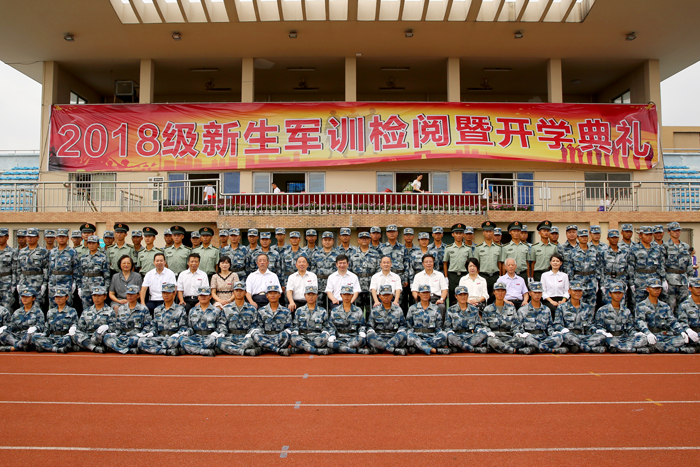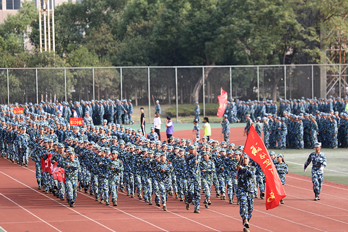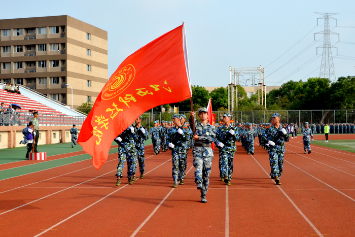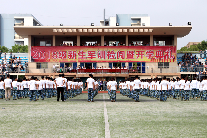 由2018级新生组成的方阵队在各学院院旗引领下依次接受检阅。矫健的步伐、嘹亮的口号展现了军训的丰硕成果。他们动作整齐划一,步伐铿锵有力,英姿飒爽地依次向主席台走来,接受学校的检阅。此刻的他们以军人般的气势,证明自己的朝气与毅力。