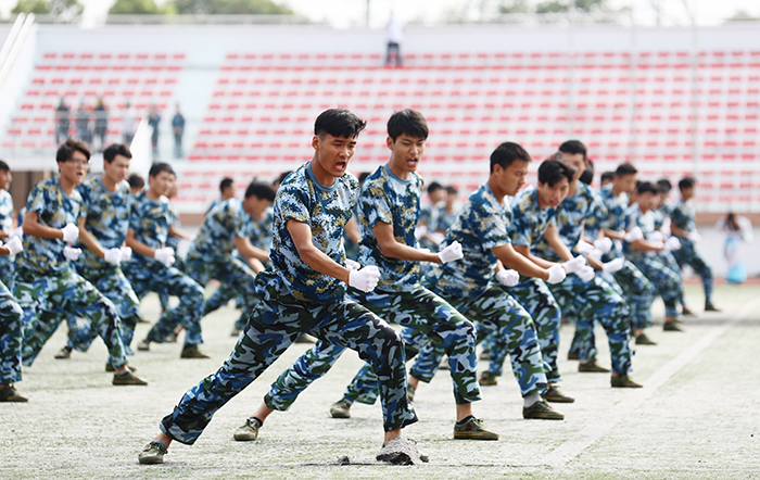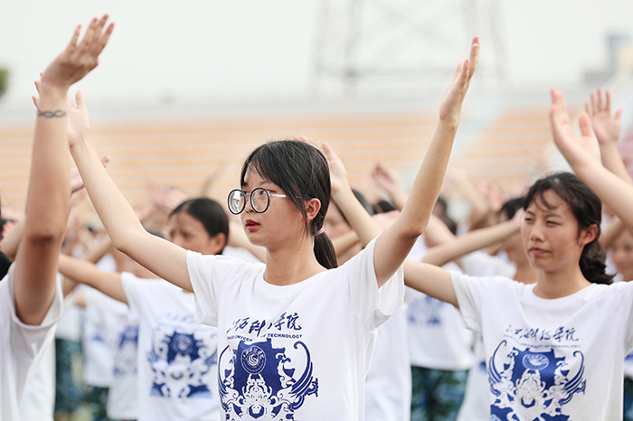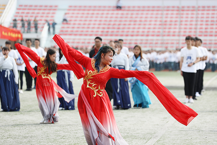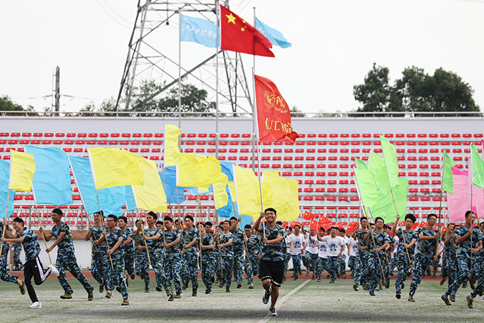 开学典礼上,机械工程学院带来的军体拳表演《军武精英》雄姿英发;管理学院带来的中华诗舞《沧桑叹》尽显中华诗之美及汉服之美;文化与传媒学院的现代舞《跃动的青春》展现了2018级新生的活力与热情;信息工程学院带来的旗舞《少年强、中国强》展现了新一代年轻学子对祖国的热爱。最后,本科新生方阵队用精彩的方阵表演不仅呈现了校徽,还展示了“爱国”、“爱校”、“爱家”、“爱己”八个字,创意十足,让人印象深刻。同学们精彩的表演博得全场阵阵掌声。