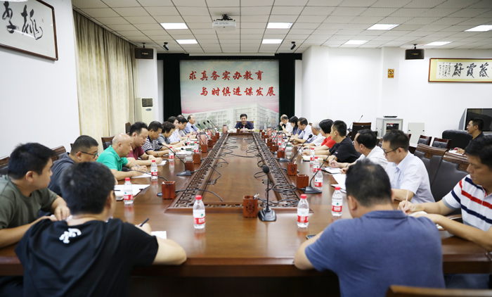 江科网讯(记者 李玉云)9月18日下午,于果董事长在行政北一楼会议室主持召开消防安全工作专题会议。校党委书记程样国,校长王海,校党委副书记肖𠇔根,副校长陈石俊、张海涛、周万华、黄辉玲、万哨凯,总督学王占铭,顾问熊爱民出席会议,总务处、学工处、保卫处等相关负责人参加会议。