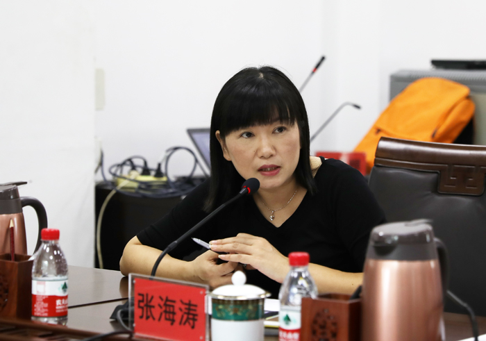 张海涛对2018年下半年审核评估工作从报告撰写、档案材料、数据采集、迎评准备、模拟评估和评估宣传等六大方面进行了部署,她要求各部门要紧锣密鼓的开展下阶段的工作。她还介绍了我校巡课、听课、评课工作方案和加强“四个活力”建设工作方案以及评估专家联络员名单。