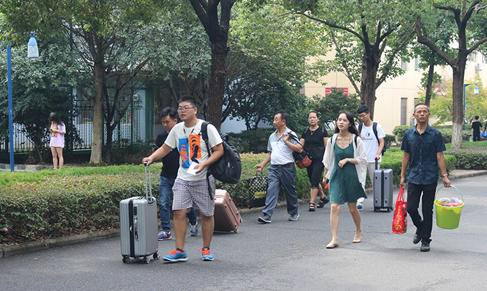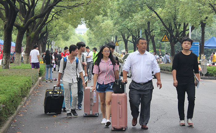 伴随着学校数字化迎新服务的开展,新生报到手续简化,不少同学在学院迎新点做好登记后,便和父母拖着行李箱直奔早已预定的宿舍,俨然一副老生返校的模样。迎新期间,身穿黄色背心的志愿者们和各单位负责迎新接待的师生热情周到的服务,让新生和家长们频频点赞。