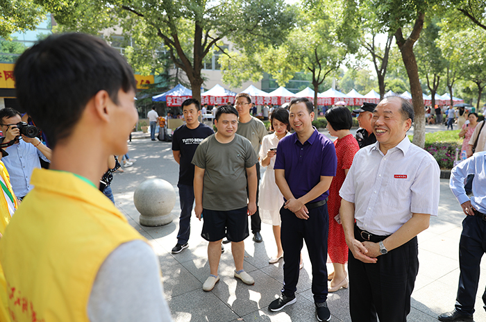 当天,王占铭来到迎新现场,看望工作在一线的迎新工作人员。在学生资助中心,王占铭详细询问了今年我校生源地助学贷款等相关工作的开展情况。在迎新接待点,他与2018级新生志愿者亲切交流,对新同学来校就担任志愿者工作表示认可与鼓励。他还在各学院迎新接待点与工作人员交谈,详细询问了新生报名、住宿安排等相关情况。