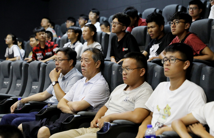 根副书记,陈石俊、林素君副校长,王占铭总督学,熊爱民顾问一同观看了影片。