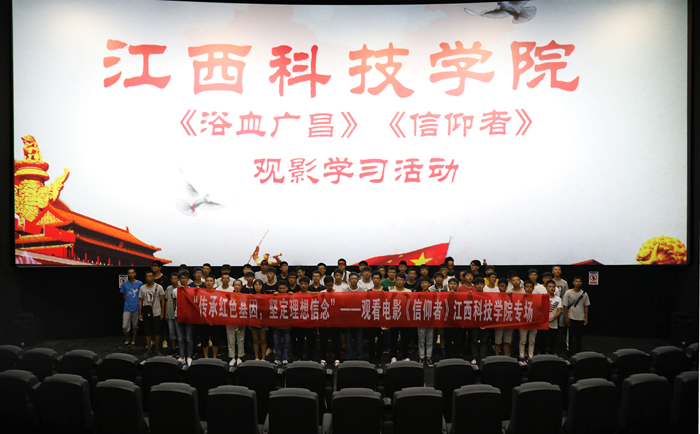 江科网讯(记者 何强江)为传承红色基因,坚定理想信念,8月30日,我校组织了党委、行政及教学等相关职能部门教师和学生代表共计200余人观看红色电影《浴血广昌》和《信仰者》。于果董事长,程样国书记,王海校长,肖
