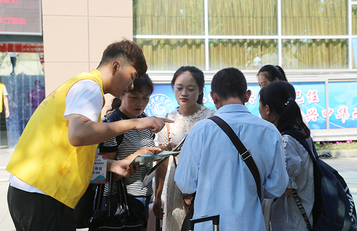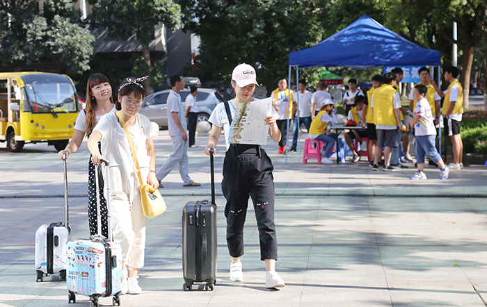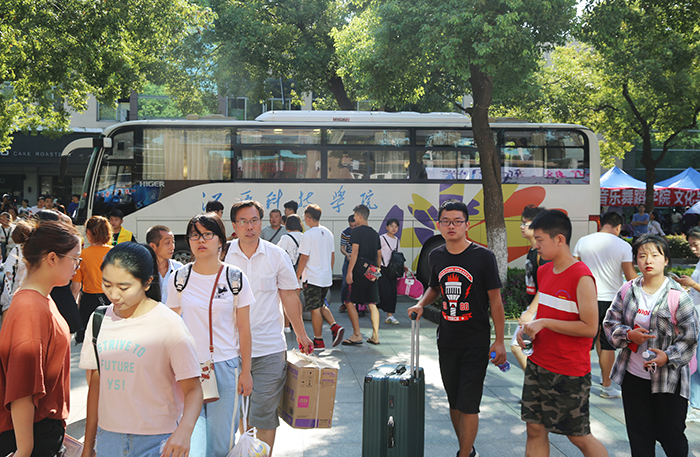 为确保新生能够安全抵校,学校学生志愿者们分别在昌北国际机场、南昌火车站、南昌西站、南昌长途汽车站等地设立24小时接待站,引导新生有序乘坐校车。校内志愿者则在各新生报到手续办理点耐心解答学生及家长的疑问,帮助他们顺利完成报到手续、入住宿舍。