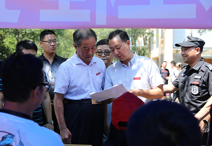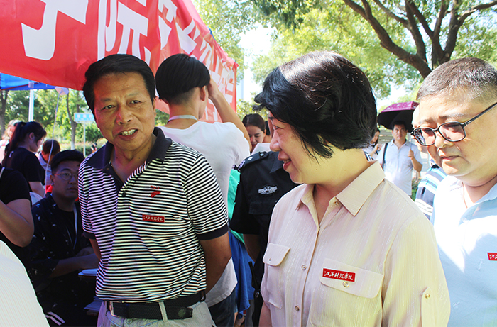 “天气炎热,你们辛苦了!”“现在有多少位同学报到了?”每走到一个迎新服务点,王海与正在忙碌的同学打招呼,向他们表示慰问。“你们来自哪里?孩子学的是什么专业?”“请家长放心,学校保证会把你们的孩子培养得更好。”在家长休息区,王海与新生家长亲切交谈。