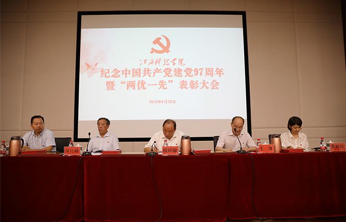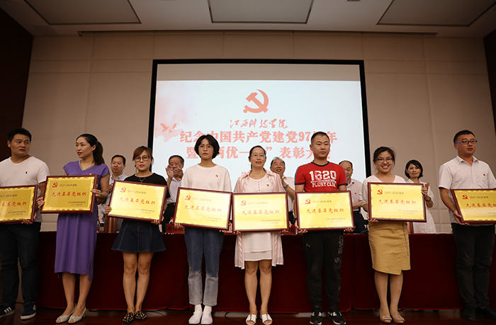 根宣读了《中共江西科技学院委员会关于表彰2017-2018学年优秀共产党员、优秀党委工作者和先进基层党组织的决定》。学校党委研究决定,授予许小磊等37人“优秀共产党员”荣誉称号;授予包三喜等10人“优秀党务工作者”荣誉称号;授予蓝天驾校第一党支部等8个“先进基层党组织”荣誉称号。与会校领导为获奖者颁奖。优秀共产党员代表罗燕红、优秀党务工作者代表李永茂分别发言。