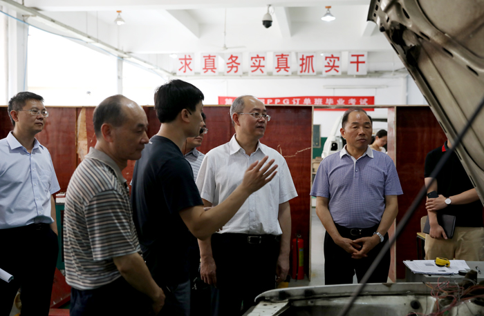 谢光华一行参观了校园、蓝天驾校,实地考察了协同创新中心、汽车实训中心。考察过程中,谢光华详细了解了人才队伍建设、仪器设备使用和科学研究发展等方面的情况。对学校科研工作及未来发展方向,谢光华提出两点希望,一是注重培养专业技术人才,建立完善科技创新激励机制,提高科技成果转移转化能力;二是以省委、省政府新的科技激励政策为契机,充分调动教师工作积极性,不断推出新成果。