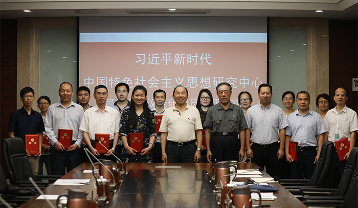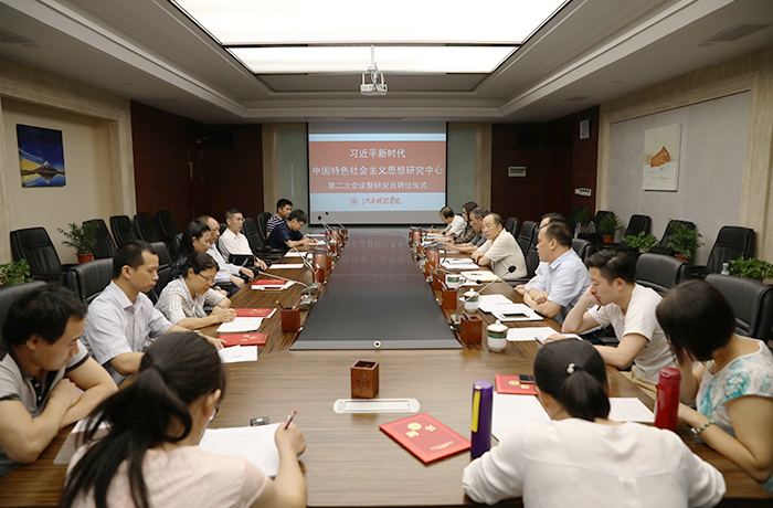 根宣读了习近平新时代中国特色社会主义思想研究中心研究员聘任名单。南昌大学饶江红教授、郑志发教授、邹小华教授、陈志兴教授及我校十名教师被聘为中心研究员。与会校领导为受聘人员颁发聘任书。