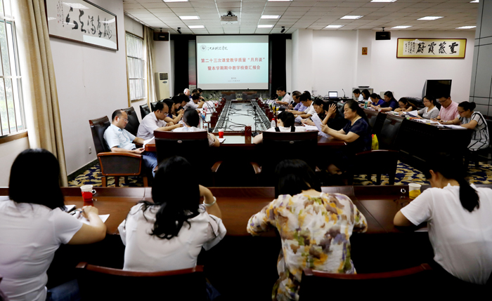 江科网讯(记者 何强江)6月7日下午,第二十三次课堂教学质量“月月谈”暨本学期期中教学检查汇报会在行政楼北一楼会议室召开。王占铭总督学和熊爱民顾问出席。会议由熊爱民主持。