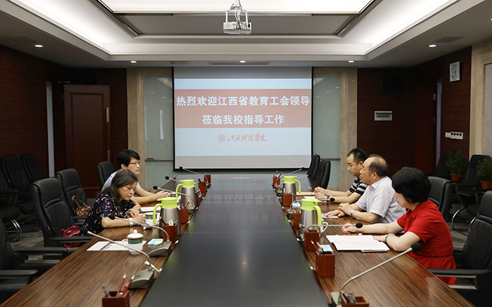 江科网讯(记者 李倩)6月6日下午,省总工会巡视员、省教育工会主席林玉华,省教育工会常务副主席黄虹,省教育工会副主席、经审委员会主任刘永东来校调研指导工会工作,受到了校党委书记程样国,副校长、工会主席林素君的热情接待。宾主在行政南楼第三会议室举行了座谈。