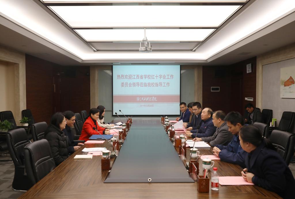 江科网讯(记者 李倩 实习记者 欧阳欢)12月20日下午,江西省教育厅巡视员何建洋,江西省红十字会党组成员、专职副会长戴莹,省红十字会组织宣传处处长石泠、处副处长夏晓雯一行来校指导红十字会工作,受到我校党委书记、督导专员程样国,党委副书记、副校长、学校红十字会会长闵桂林的热情接待。双方在行政南楼第三会议室座谈。