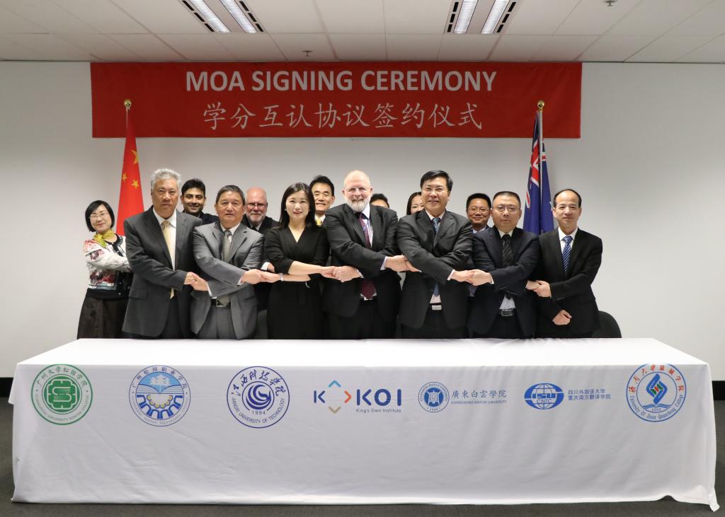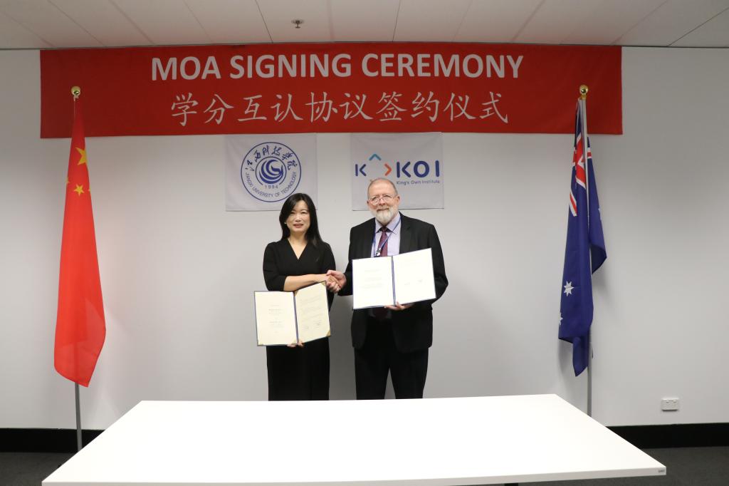 张海涛代表学校与澳大利亚国王学院签署《学分互认协议》。根据该协议,我校攻读学士学位课程的学生和毕业生,可以申请转入澳大利亚国王学院进行学士学位课程学习,并有机会在澳大利亚国王学院完成学士学位课程,从而使学生能够在完成我校和国王学院两所学校所要求的课程学习后,分别可被授予江西科技学院和国王学院的学士学位。同时,我校学生在国王学院完成学士学位课程后,可以在该校继续攻读硕士课程。