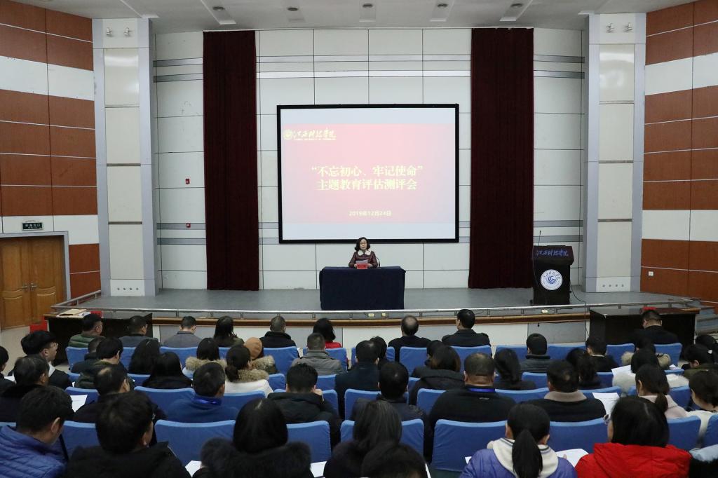 江科网讯(记者 李倩)12月24日下午,我校在学术报告厅B厅召开“不忘初心、牢记使命”主题教育评估测评会。省委第十五巡回指导组副组长田红敏参会指导。校党委副书记肖イ毛根,副书记、副校长黄辉玲、闵桂林,党委委员、副校长林素君,党委委员、纪委书记、组织部部长夏拥华及师生党员、群众代表400余人参加会议。