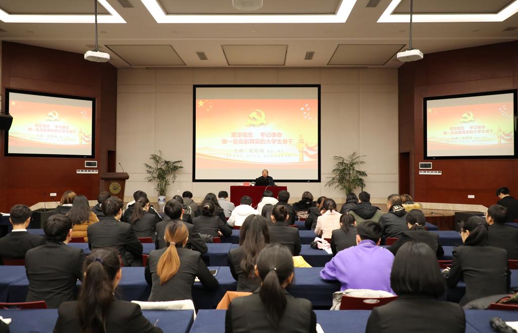 程样国从六个方面引导大家如何成为名副其实的大学生骨干:一是坚定理想信念,做一名马克思主义的坚定信仰者;二是牢记时代使命,做一名马克思主义思想的积极传播者;三是勇于改革创新,做一名党的十九届四中全会、中央群团工作精神的忠实实践者;四是时刻保持联系,做一名党的群众路线的坚定执行者;五是立足脚踏实地,做一名全校广大青年学生的模范带动者;六是关心学校发展,在学校内涵建设中发挥积极作用。