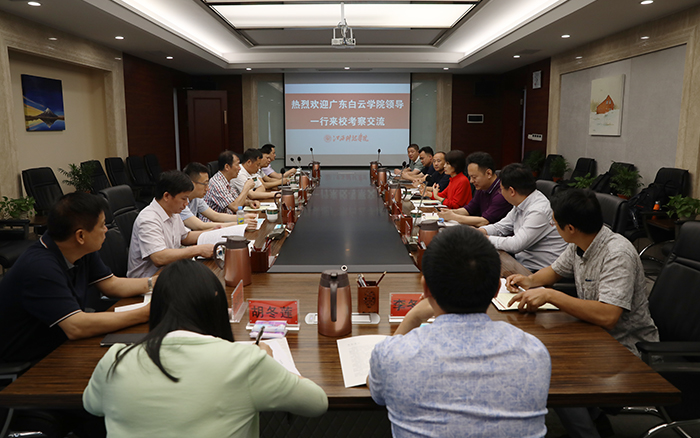江科网讯(记者 李倩)5月11日上午,广东白云学院院长助理黄若海一行来校考察交流,受到黄辉玲副校长的热情接待。宾主在行政南楼第三会议室举行座谈。参加座谈的还有总务处、保卫处和图文信息中心等部门负责人。