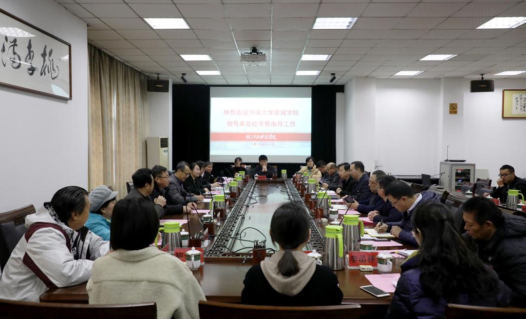 江科网讯(记者 李倩)11月28日-29日,济南大学泉城学院副校长刘增夕带队来校考察交流,受到万哨凯副校长的热情接待。宾主在行政北一楼会议室举行座谈。