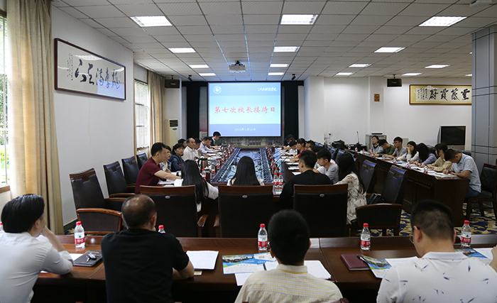 江科网讯(记者 李倩)“我觉得创新班可以实施滚动制度,给有志于加入创新班的同学新的机会。”“希望学校能开辟更多的教室让大家在课后有充足的场地自习。”5月10日上午,在我校第七个“校长接待日”活动上,学生代表与校领导面对面,就校园环境建设、宿舍管理、创新班教育、晚自习管理等方面提出建议。活动在行政北一楼会议室举行。校长王海,副校长陈石俊、张海涛、周万华、黄辉玲、万哨凯等接待了来自各学院的二十余名学生代表。校团委、科研处、学工处、总务处、图文信息中心等部门的负责人和各学院党总支书记、校学生会主席参加了接待。接待会由校团委副书记马孙亮主持。