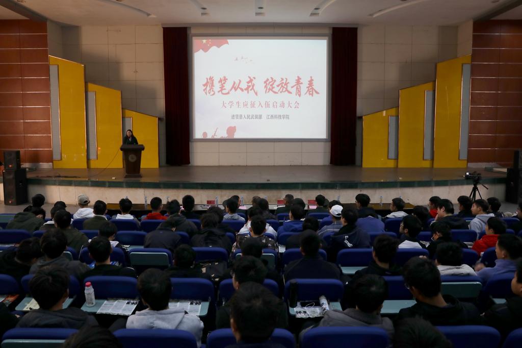 进贤县人民武装部军事科长赵力、招就处副处长付海华及各学院学工副院长、辅导员、学生代表共800余人参加宣传会。