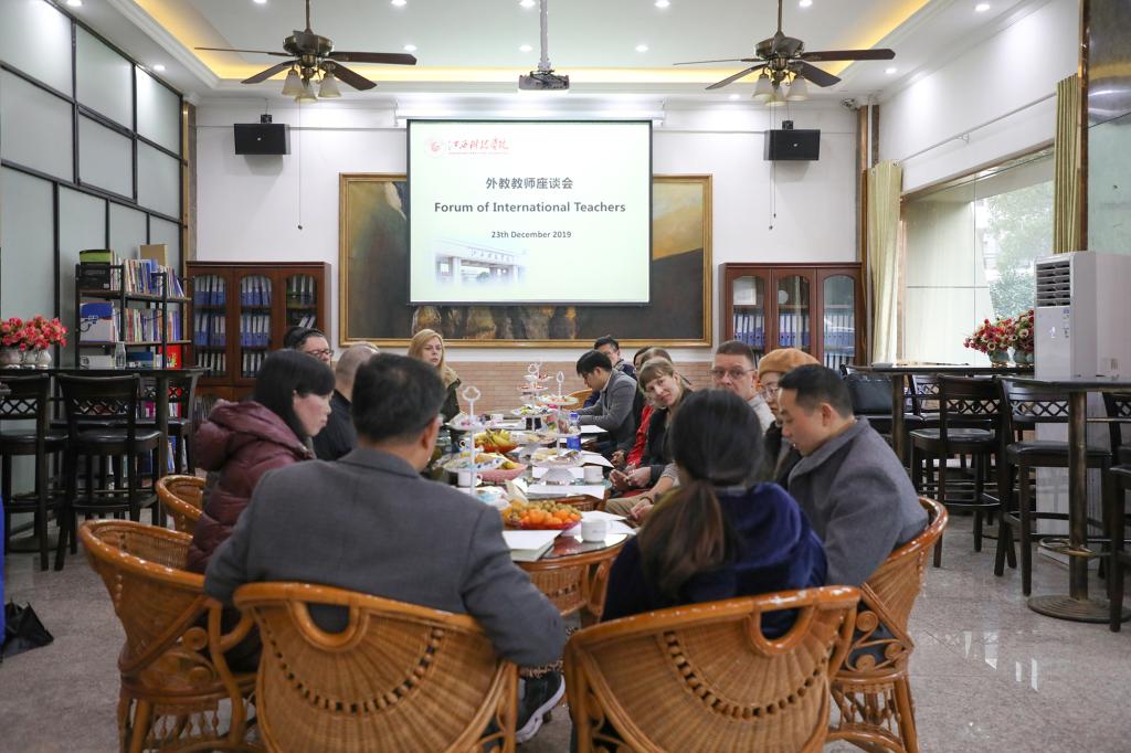 座谈会上,外籍教师们结合自己来校后的工作和生活情况,从课程设计、课时安排、教学效果、教学设施、师生交流等方面发表了自己的看法并提出建设性意见和建议。