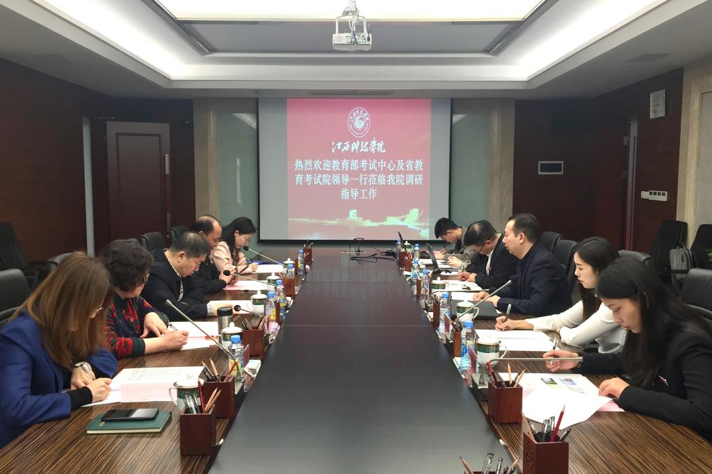 江科网讯(通讯员 杨银)为落实省教育工委、教育厅2019年工作要点“建设全省自学考试过程性评价管理平台,逐步实现考生信息的信息化管理”有关精神,促进新时期我省高等教育自学考试科学发展,11月24日下午,教育部考试中心调研组王建民、罗杨、彭雯等在省教育考试院副院长余芳霖、自考处处长刘江华的陪同下,莅临我校参加“自学考试过程性评价”工作调研指导。王建民一行受到董事长于果、校长张海涛、副校长万哨凯的热情接待。此次调研会议由余芳霖主持。