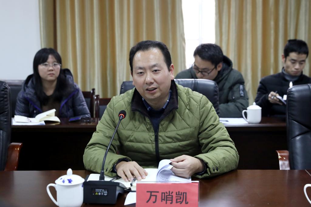 万哨凯在会上肯定了前一阶段专业认证工作取得的成效。他指出,学院老师全员参与,把OBE理念与自己的课程紧密结合起来,用理念指导教学,有利于提高教师教学质量。对于下一阶段专业认证工作,他提出三点要求。一是继续强化OBE理念,深刻理解专业认证内涵。要不断学习和深化OBE理念,在理念的引导下将专业认证的要求和内涵结合起来,使专业认证这项工作深入人心,取得实效。二是将细化专业认证的要求融入到教学管理环节。要转变理念,通过教师每堂课的教学目标、学生每节课的学习效果落实专业认证要求。三是通过专业认证加强教学管理。要把专业认证融入到每门课程的教育教学管理,提升专业建设。他希望大家在教学过程管理中有更多的思考,通过总结反思促进和帮助教学改革,用更多新理念、新办法来指导自己提高教育教学水平。