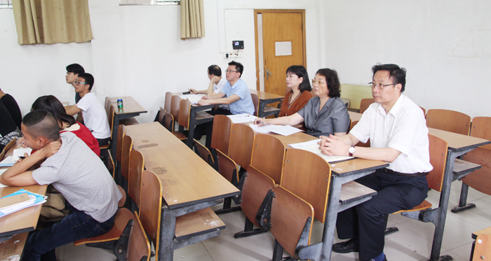 江科网讯(通讯员 曾金锋)为深入推进学校内涵建设,落实好审核评估工作精神,根据《江西科技学院课堂教学提升年工作方案》要求,5月3日上午,副校长陈石俊、张海涛,顾问熊爱民在督导处处长何龙安、教务处处长马红坤等人员的陪同下,深入财经学院,分别听取了该学院院长黄爱科的《宏观经济学》和教学副院长阳正发的《税法》课程。三位校领导边听课边记录,时刻关注教师教学、学生听课状态。