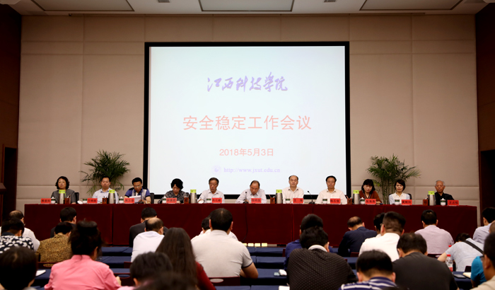 江科网讯(记者 何强江)5月3日下午,江西科技学院安全稳定工作会议在行政南楼第一会议室召开。会议旨在贯彻落实全省教育系统安全稳定工作会议精神,研究部署进一步做好学校安全稳定工作。校党委书记程样国,校长王海,校党委副书记肖イ毛根,副校长陈石俊、张海涛、林素君、周万华、黄辉玲、万哨凯,总督学王占铭,顾问熊爱民出席。会议由程样国主持。