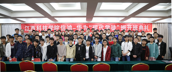 开班仪式由招就处处长吴丽娟主持,参加仪式的还有华为招聘经理陈志清,华为生产部经理张靖、李军,我校教务处处长马红坤,招就处副处长付海华以及“现代学徒”班订单班的全体学员。仪式最后,与会全体成员合影留念。