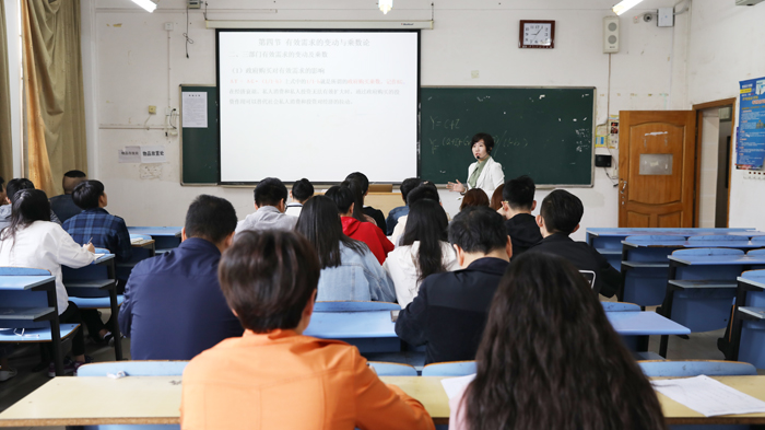 4月17日上午,党委副书记、副校长万哨凯在督导处长何龙安、财经学院院长黄爱科等人员的陪同下,来到J2-208,听取了李媛老师为17本投资1班同学讲授的《宏观经济学》课程中的有效需求的变动与乘数论的教学内容。课堂上,万哨凯神态专注,认真听课做记录。