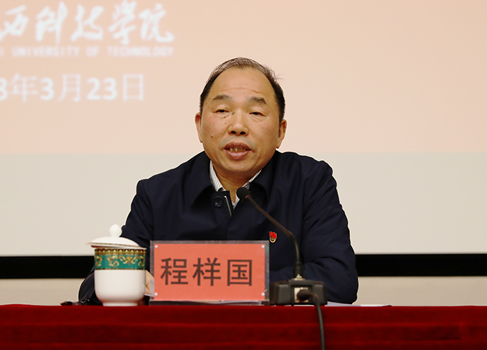 程样国在会上回顾了学校全面从严治党工作。他说,三年来校党委、纪委按照有关要求,将党风廉政建设工作融入学校发展大局,突出抓好领导干部廉政教育、教工廉洁自律、强化问责追责、改进工作作风等工作,党风廉政建设取得了明显成效,为我校综合改革发展、办好人民满意教育提供了坚强保证。对于2018年的工作,他作了详细部署,提出具体要求。一是进一步深入学习贯彻习近平新时代中国特色社会主义思想和党的十九大精神,坚决维护党中央权威和集中统一领导。全校要持续推进学习宣传、扎实组织培训、深入研究阐释。二是以教育系统党建质量年为契机,多途径激发党组织工作新活力。要紧紧抓好政治学习不放松,持续深入推进“两学一做”学习教育;紧紧抓好基层党组织建设不放松,充分发挥战斗堡垒作用;紧紧抓好党员队伍文化素养提升不放松,创新发挥党员以点带面思想文化引领作用。三是坚定不移地推进党的作风建设,持之以恒正风肃纪。要压实责任强担当、加强师德师风建设、加强干部的廉政建设、强化党建考核。他指出,2018年,是贯彻党的十九大精神的开局之年,是教育系统党建质量年、实施“奋进之笔”的进取之年,也是学校实施“十三五”规划和推进综合改革的关键之年。学校全体师生员工要提高政治站位,切实把思想认识统一到中央和省委、省教育工委全面从严治党新要求上来,充分发挥各级党组织战斗堡垒作用,为书写江科教育改革“奋进之笔”、办好人民满意教育提供坚强有力的思想政治保证,为把江科建设成为有特色、应用型全国一流民办本科高校贡献力量。