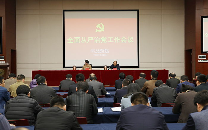 江科网讯(记者 李倩)3月23日下午,学校全面从严治党工作会议在行政南楼第一会议室召开。会议旨在深入学习贯彻党的十九大和十九届中央纪委二次全会、省纪委二次全会精神,学习贯彻全国两会精神,总结2017年学校全面从严治党工作,部署2018年学校全面从严治党重点任务。校党委书记程样国出席,纪委书记、副校长黄辉玲主持。
