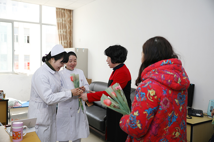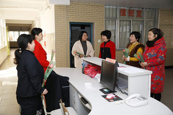江科网讯(记者 薛敬涛)3月8日下午,副校长、工会主席林素君在工会委员刘国安和女工委员崔洪洁、肖爱武的陪同下,走访了护理学院、图书馆、招就处、宿一栋、继续教育学院,看望了“三八节”依然坚持奋斗在工作一线的女职工,并送上了鲜花和节日的祝福。林素君在慰问期间表示,我校女员工在学校的发展中发挥了举足轻重的作用,在各自岗位上勤奋工作、积极进取、无私奉献,为学校作出了应有的贡献,展示了新时期女性的良好形象。