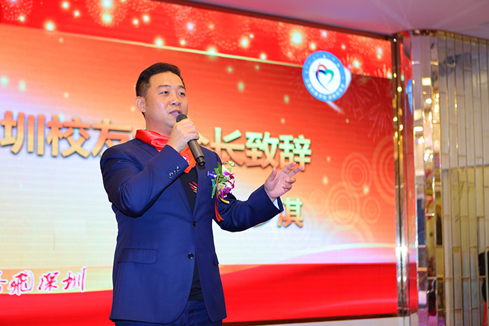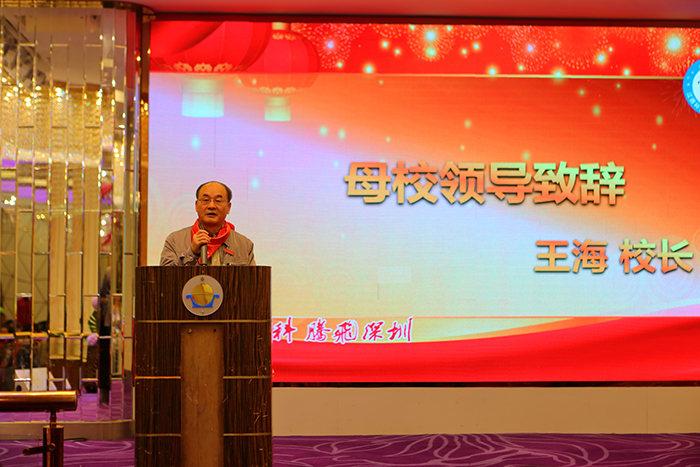 于果董事长发来祝福VCR,希望校友们在奋斗中发展,在改革中不断跨越,乘风破浪,并祝校友们2018事业有成、狗年大吉!王海代表学校向深圳校友会10年所取得的成绩表示祝贺,向为此作出贡献的每一位校友致以诚挚的谢意,并分享了2017年学校取得的各项成绩。