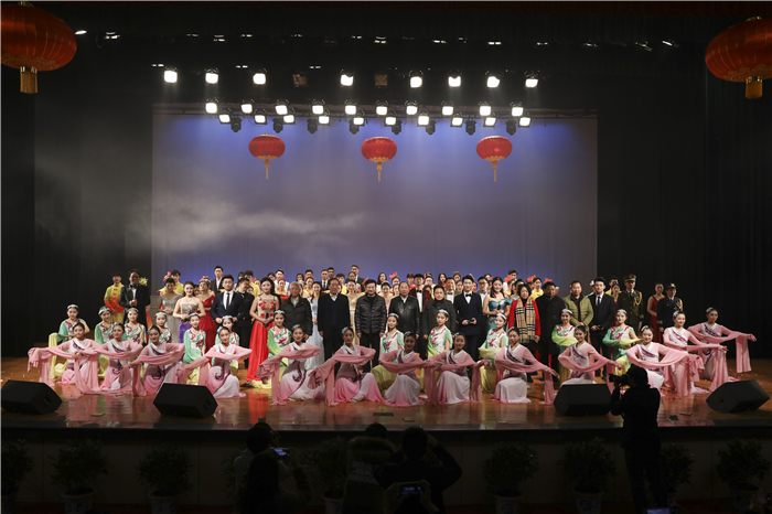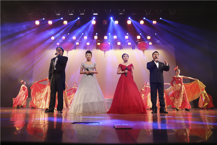 民乐大合奏《达姆达姆》+《瑶族舞曲》拉开晚会帷幕,优美的旋律描绘出欢歌热舞的喜庆场面,引来满堂喝彩。轻盈、欢快的舞蹈《盛世欢歌》展现出一幅喜庆的画卷。红色经典作品朗诵《党旗下》号召大家向中华民族伟大复兴的中国梦奋勇前进。民歌二重唱《芦花》唱出了平凡事物所蕴含的朴素美。舞蹈《水月》美得令人沉醉,舞者们翩若惊鸿,婉若游龙。时装走秀《羽衣秀色》彰显了时尚前卫、古典优雅的服装风格。独唱《滕王阁赋》兼容了激昂奔放与沉稳厚实的男中音,描绘出“落霞与孤鹜齐飞,秋水共长天一色”的壮阔美景。晚会在歌伴舞《共筑中国梦》后落幕。