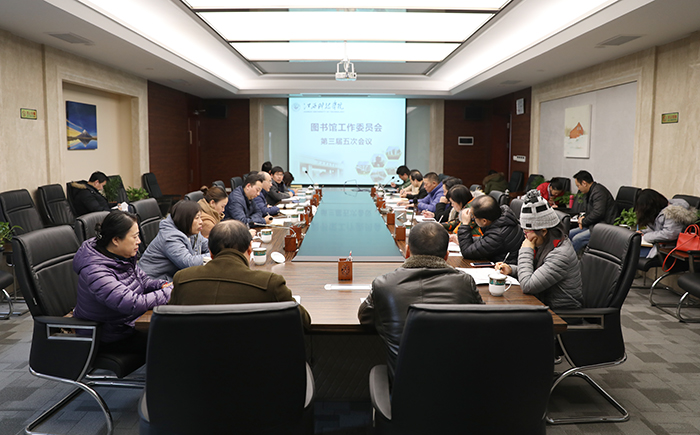江科网讯(记者 李倩)12月20日下午,校图书馆工作委员会第三届五次会议在行政南楼第三会议室召开。校长王海,副校长万哨凯、张海涛出席。会议由张海涛主持。