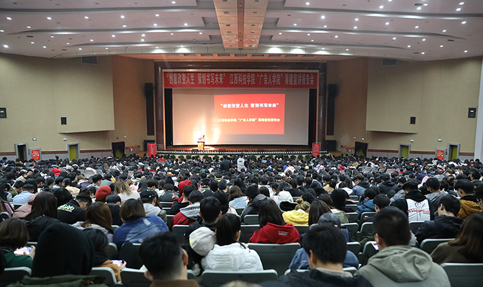 签约仪式前,我校在蓝海大剧场举办“创意改变人生 策划书写未来”江西科技学院“广告人学院”筹建宣讲报告会。宣讲会由胡剑锋主持。他在现场寄语同学们,希望大家把握机会,努力学习。他说,大家是幸运的,能够聆听大师们的精彩宣讲;大家是幸运的,能够有机会进入江科“广告人学院”;大家是幸运的,能够近距离接受名家的教诲;大家是幸运的,能够去名企零距离实习;大家是幸运的,能够成为江科广告人联盟的受益者。