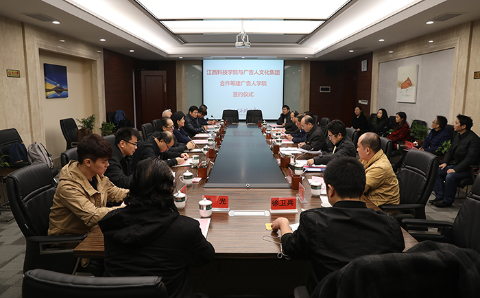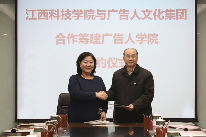 据悉,学校将以艺术设计学院的艺术设计和文化与传媒学院的影视制作两个专业方向与广告人文化集团创建江西科技学院“广告人学院”。学院将配备百名实战讲师、百家实习基地、百家就业基地,创新办学格局。学院的建立将打破传统以在校专职教师为主要师资力量的局面,聘请国内知名企业高管、大咖,知名设计师,影视创作大师,社会名流来承担行业教学任务,实现与行业岗位零距离接触。学生可到行业最前沿的阵地去实训,毕业后可在业界一线公司就业。
