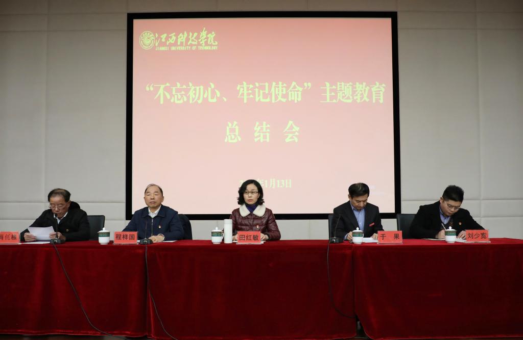 江科网讯(记者 李倩)1月13日下午,我校在行政南楼第一会议室召开“不忘初心、牢记使命”主题教育总结会议。省委第十五巡回指导组副组长田红敏,成员刘少宽到会指导。董事长于果、党委书记程样国、校长张海涛等全体校领导及校党委委员出席会议。会议由校党委副书记肖イ毛根主持。