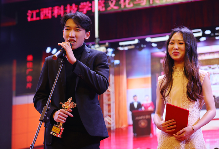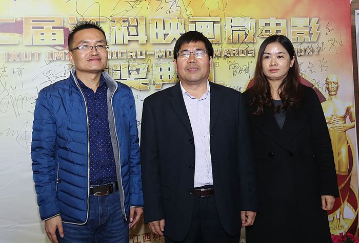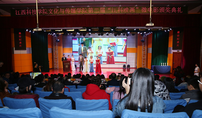 江科网讯(记者 何强江 薛敬涛)11月29日晚,由文化与传媒学院主办,2015级广播电视编导专业金鹰编导创新班承办的第二届“江科映画”微电影节颁奖典礼在该学院演播中心(报告C厅)举行。校党委书记程样国,校长王海,校党委副书记肖イ毛根,副校长张海涛以及部分职能部门负责人、学院院长等嘉宾出席典礼并为获奖影片和演员开奖、颁奖。